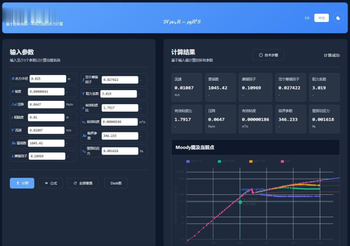 (3)为所有经典管道流动公式提供了统一的理论基石。哈根-泊肃叶定律是 x=1 时的直接推论;达西-魏斯巴赫方程通过 λ=64x/Re 统一描述;Colebrook-White方程通过状态方程转化为显式形式,揭示其物理结构本质。