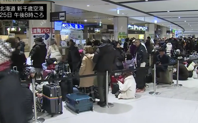 暴雪导致新千岁机场运营严重受阻。新千岁机场运营方、北海说念机场股份有限公司说,25日取消56架次航班,约7000名搭客在机场内过夜。