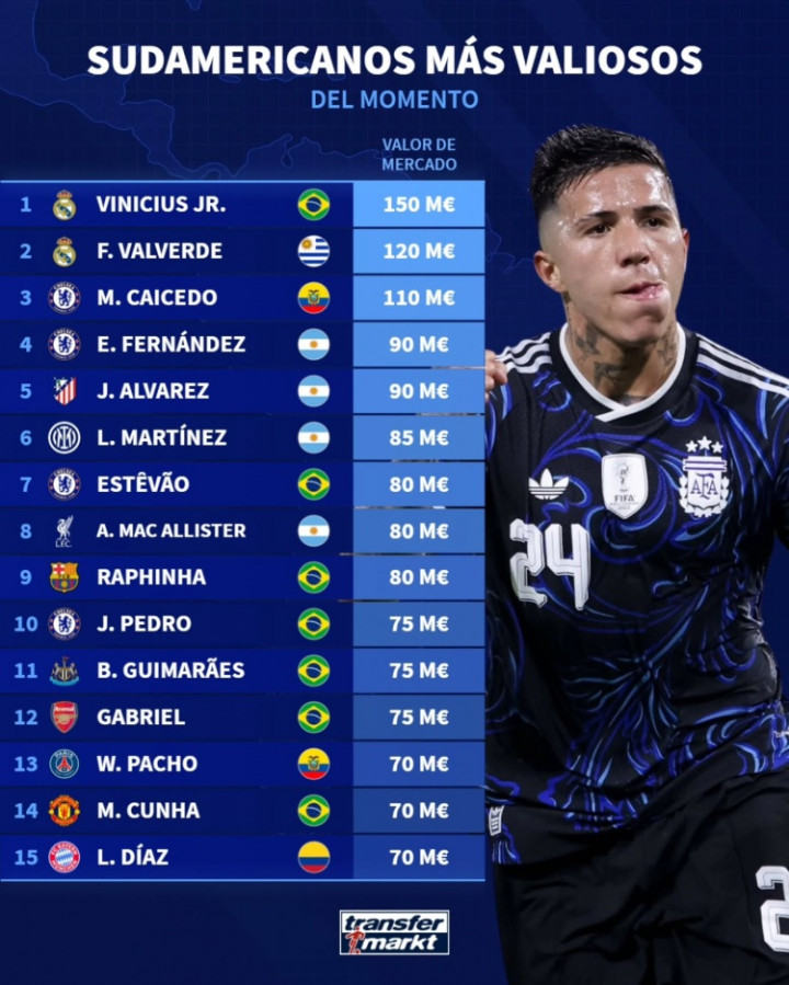 直播吧4月12日讯德国转会市集列出了南好意思球员身价名次,维尼修斯1.5亿欧居首,北京pk10官网巴尔韦德1.2亿欧次席。