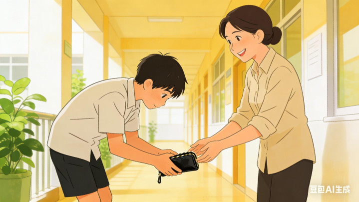 文中事例:文中主东说念主公捡到钱包交给诚恳。