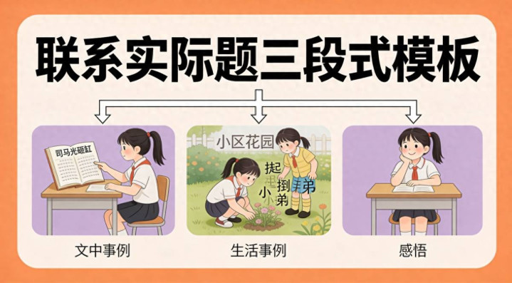 联系履行题是阅读领会的蹙迫题型,条款孩子相接著作内容和本身生计请示谈感受、说体会。掌抓科学的答题模板能匡助孩子组织模范、内容充实的谜底,造就得分率。本贵寓提供"文中事例+生计事例+感悟"三段式答题模板。