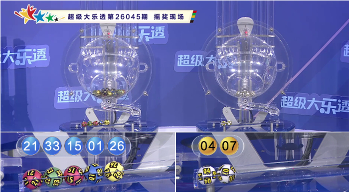 上期开奖:体彩大乐透第2026045期开奖号码为:01 15 21 26 33 + 04 07。