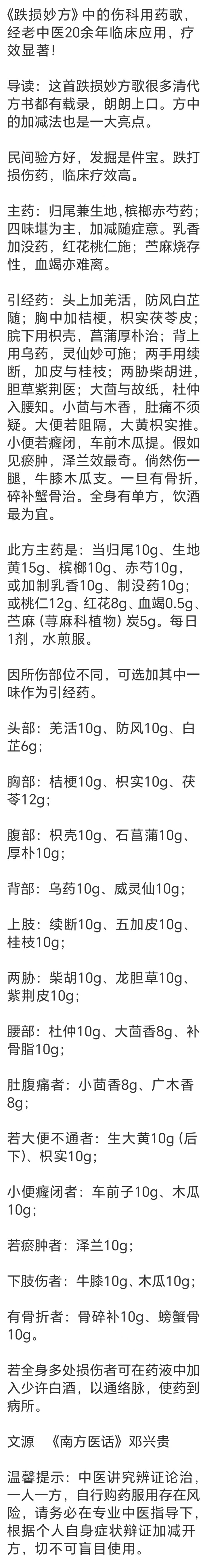 pk10官网 《跌损妙方》中的伤科用药歌, 经老中医20余年临床期骗, 疗效显耀