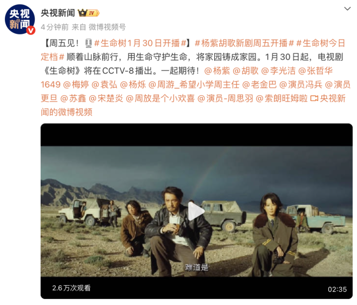 pk10 电视剧《人命树》1月30日在CCTV-8开播, 杨紫、胡歌主演;杨紫曾暗示拍戏时有高原响应