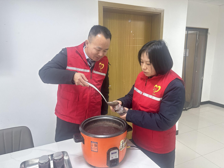 湖北交投武黄运营公司红莲湖收费站“爱路-AiLu”志愿者以腊八节为机会开展暖心做事活动,融传统风气于暖心做事,为冬日奔走的司乘奉上腊八粥与便民矜恤,让风气暖和浸润路径,为行将开启的春运增添暖意。