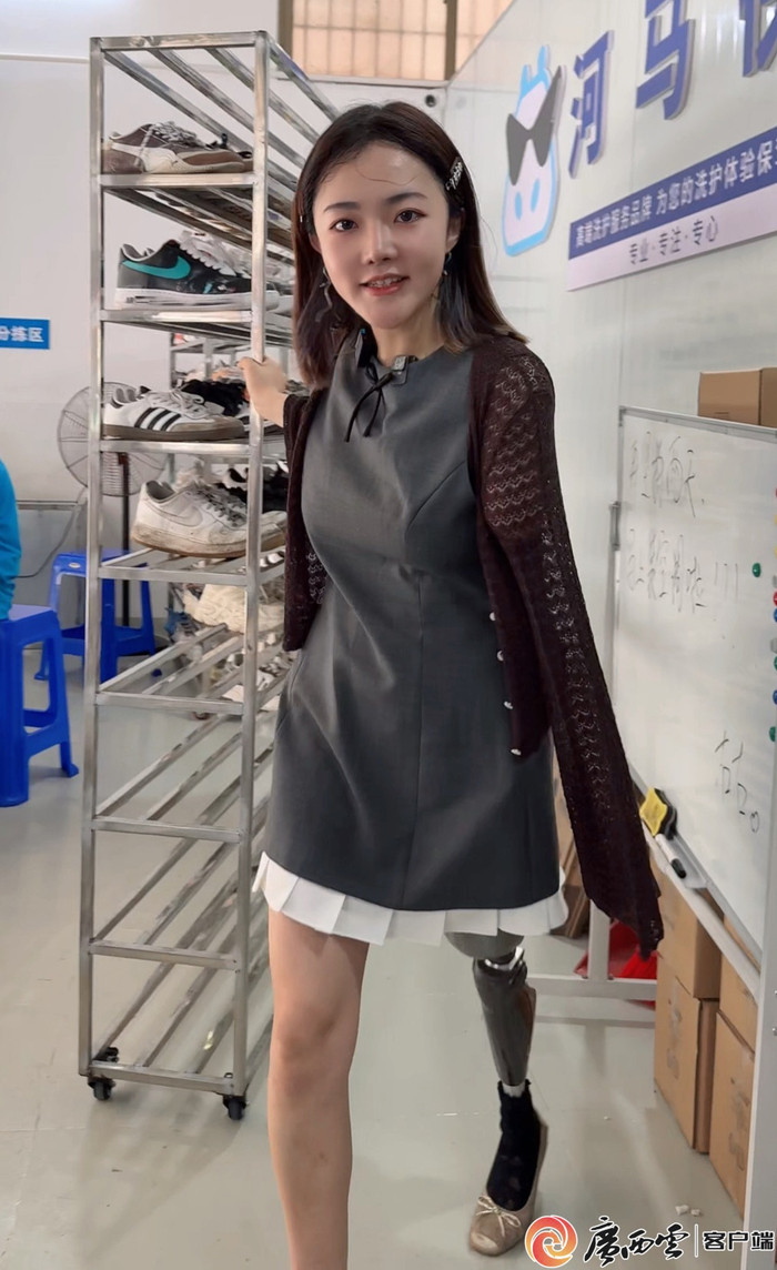 01南宁症结女子翁忻怡车祸失去左臂左腿后,通过短视频纪录康复经过并创业,开设洗鞋工场雇佣症结职工,助东说念主助己登上“中国好东说念主榜”,计较将“残健会通”形状带回广西。