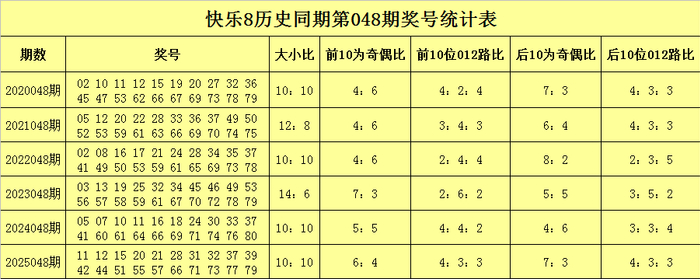 在第048期历史同时开奖中,后10为号码012路比为20:20:20,各路号码走势基本均衡,客岁同时后10位号码012路比为4:3:3,各路号码发达基本均衡,本年同时展望后10位各路号码走势基本均衡,参考号码40、45、47、51、62、64、66、69、73、74。