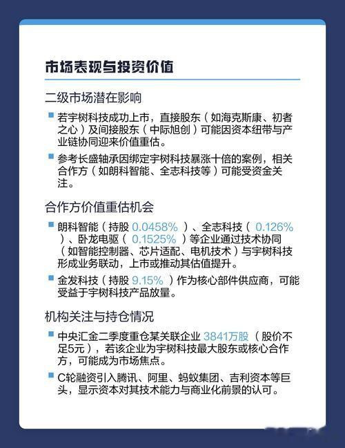“机器东谈主‘独角兽’宇树科技要上市了?别只看干豫,这份宗旨股名单才是硬货!” 机器东谈主圈最近出了件大事:宇树科技还是完成IPO训导,准备讲求冲击上市了!拿起宇树,天下可能不目生,春晚上舞蹈的机器狗、网上爆火的具身智能机器东谈主,背后皆是它的身影。行动估值超百亿的全球机器东谈主巨头,它的上市不仅是科技圈的狂欢,更是成本市集的“深水炸弹”。 谁是宇树上市的“真亲戚”? 宇树没在A股径直上市,但“宇树宗旨股”还是感触良深。最直接纳益的即是股权重估型公司。比如巨星科技,它通过子公司径直握股,宇树一...