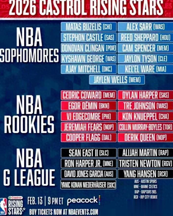 1月27日NBA官方官宣全明星少壮赛齐备名单,中国球员杨瀚森以G联赛身份生效入围,成为继姚明、易建联后,又一位登上NBA少壮赛舞台的中国内线球员,这波实力出圈,平直燃动中国球迷! 本次少壮赛声势弃取全新搭配,21名NBA一二年岁少壮联袂7名G联赛球员构成28东谈主名单,冲破了以往仅NBA现役球员入选的端正,而杨瀚森能从G联赛中脱颖而出,靠的全是硬实力。 动作2025年NBA选秀16号秀,杨瀚森被蛊惑者选中后下放至G联赛扯破之城混音队,本赛季他在G联赛打出了场均18分9篮板的亮眼证实,塌实的内线...