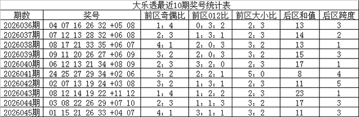 pk10官网 046期王天财大乐透预测奖号:冷热码分析