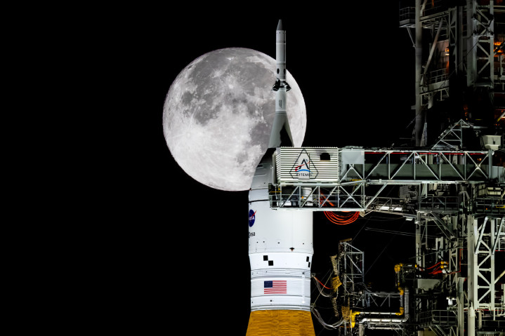 矗立在佛罗里达州肯尼迪航天中心的39B发射工位的阿尔忒弥斯II载人绕月的SLS火箭,可是留下了不少相当震撼场景的照片,目前正值满月,那张SLS火箭顶着目的地月球的照片确实有些诗情画意,社交媒体上的科学爱好者都在刷这张照片。