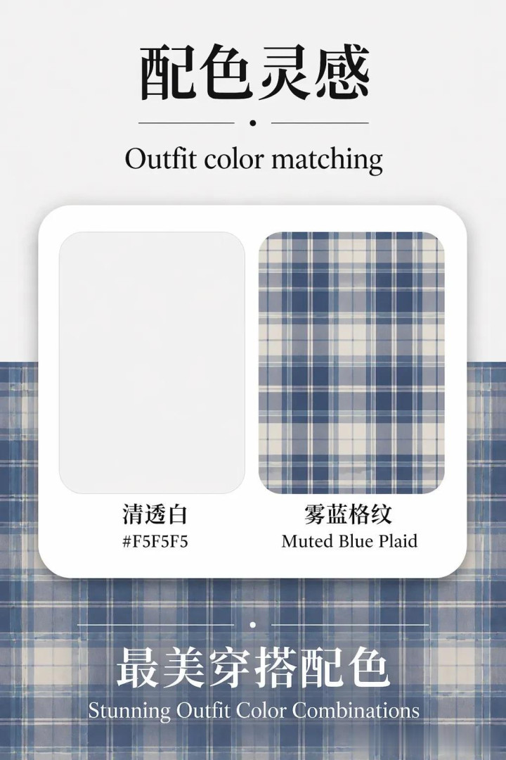 • 雾蓝格纹半裙:矜恤、扩散、增多档次