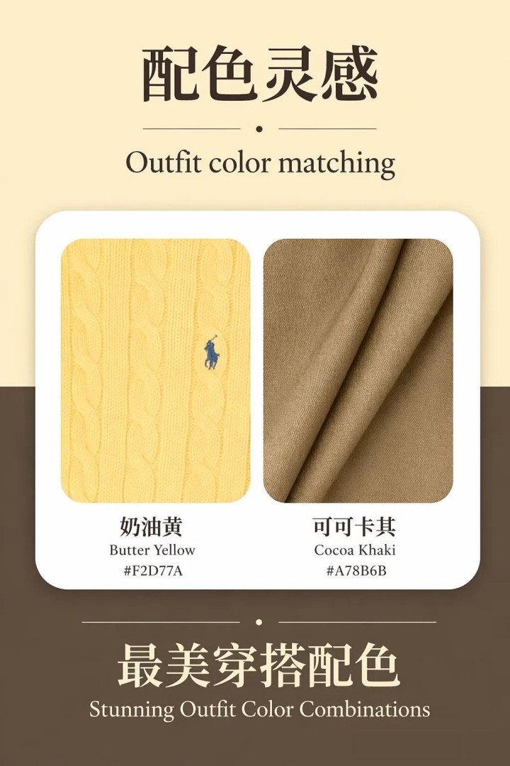 • 奶油黄短袖Polo衫:亮、轻、栽植气色