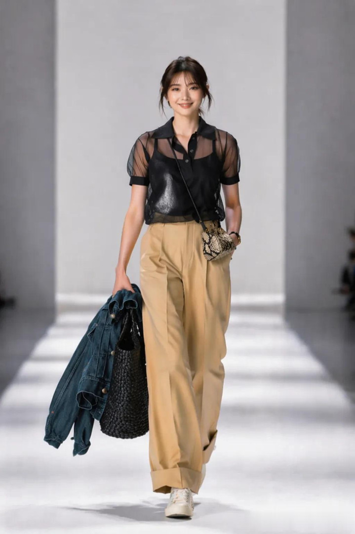 • 奶油白高腰阔腿裤:轻、亮、缓冲巩固