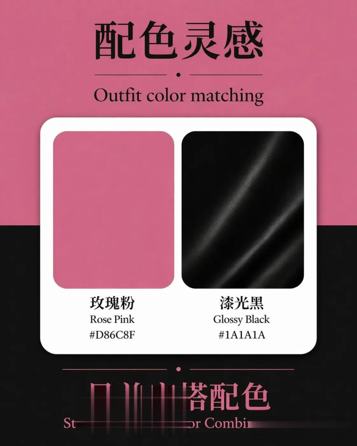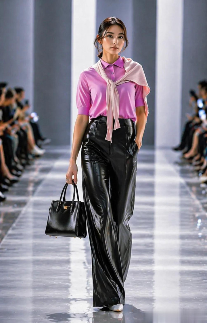 ② 玫瑰粉Polo衫 × 漆光黑高腰裤