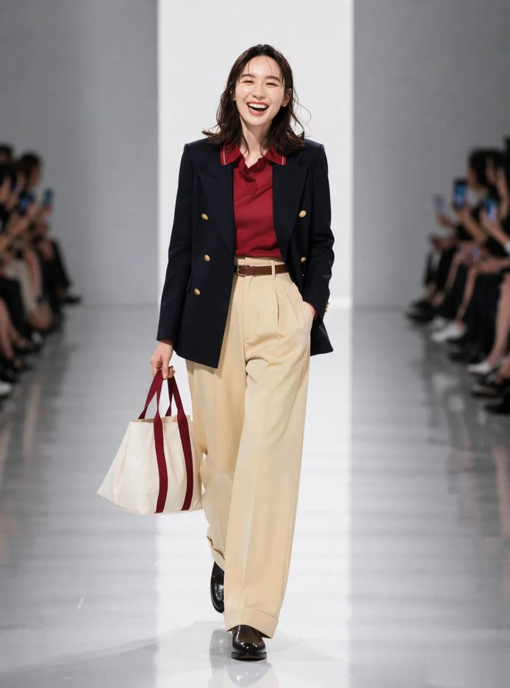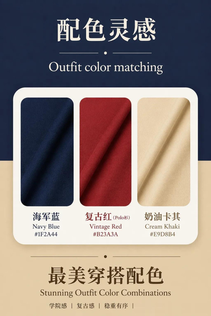 ⑤ 舟师蓝西装 × 相沿红Polo衫 × 奶油卡其西裤