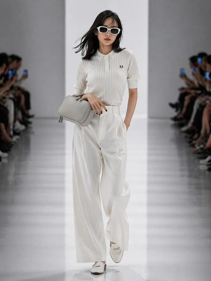 ④ 奶油白真诚Polo × 清白白阔腿裤