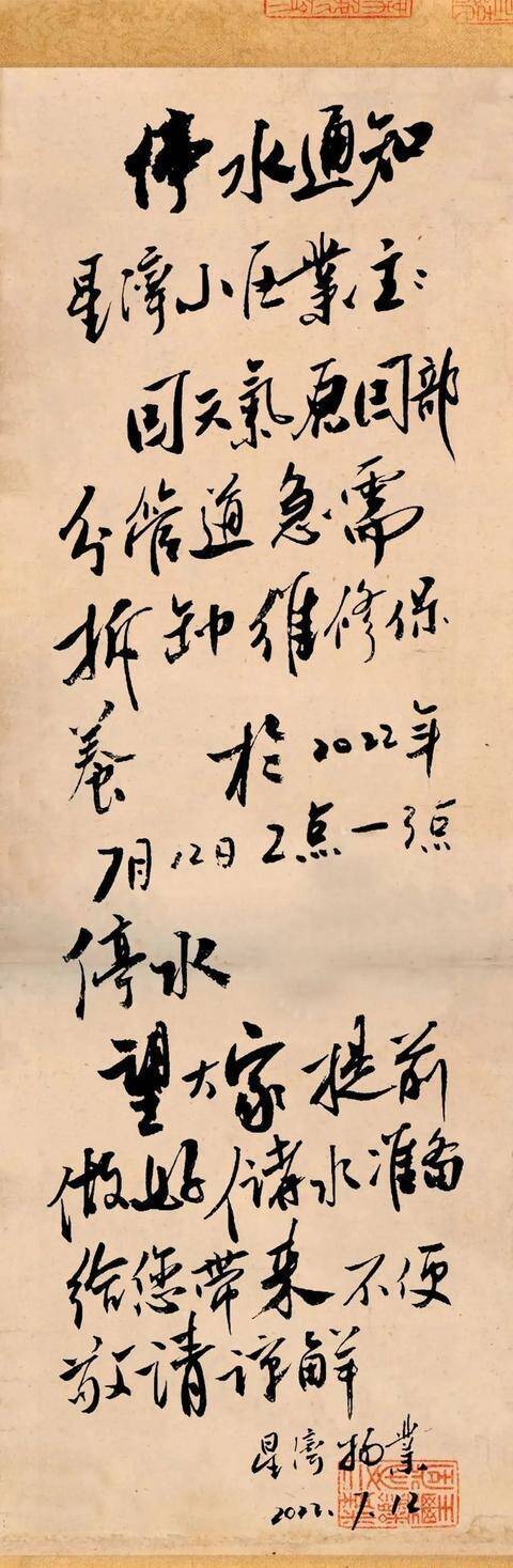更有预想的是,文书题名日历为2022年7月12日,北京pk10官方网站竟是近期新写之作,网友纷纷嘲谑:“这小区物业怕不是书协招揽的吧?”