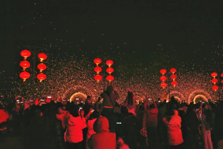 玩累了千万别急着走。景区的荫藏惊喜超加分:非遗千灯把街巷扮得流光溢彩,花灯映着古风建筑好意思到犯规;夜晚的打铁花更是震撼无比,1600℃铁水溅向夜空,盛开成漫天“火树琪花”,氛围感平直拉满。
