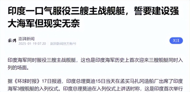 澎湃新闻《印度连气儿入伍三艘主军舰艇,誓要建立刚劲舟师但试验无奈》