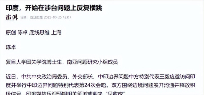 澎湃新闻《印度,驱动在涉台问题上反复横跳》