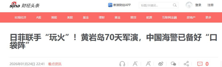 日菲联手“玩火”!黄岩岛70天军演,中国海警已备好“口袋阵”-2026年01月24日 22:41-新浪财经