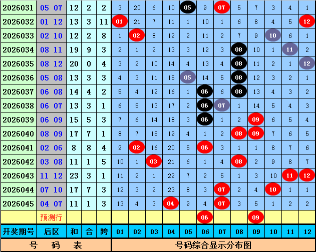 后永诀析:上期后区开出号码04和07,最近10期后区奖号奇偶比为8:12,大小比为12:8,本期后区看好号码01、05、06、08、09,后区单挑两码06、09。